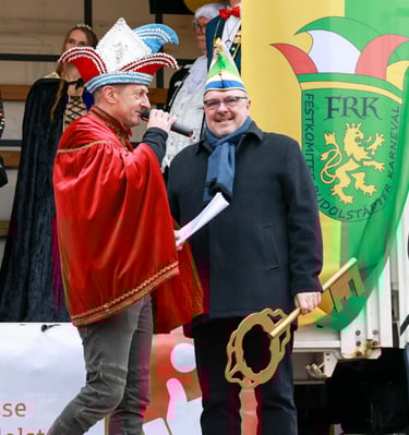 Auch in diesem Jahr laden die Rudolstädter Karnevalsvereine gemeinsam unter dem Dach des Festkomitees Rudolstädter Karneval zum großen Auftakt der 5. Jahreszeit ein. Am 15. November 2025 gestalten wir wieder einen festlichen Umzug durch die Innenstadt, gefolgt von einem abwechslungsreichen Programm auf dem Marktplatz.
