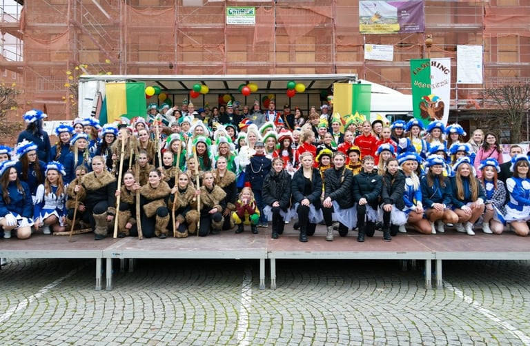 Auf dem voll besetzten Marktplatz wurde im Anschluss auf der Bühne ein schwungvolles Programm geboten. Die Tanzgruppen der Vereine präsentierten ihre einstudierten Choreografien, die vom Publikum mit viel Applaus honoriert wurden. Der Höhepunkt des Tages war die feierliche Schlüsselübergabe: Bürgermeister Jörg Reichl übergab traditionell den Rathausschlüssel an das närrische Volk – in diesem Jahr jedoch mit einem Augenzwinkern auch eine leere Stadtkasse. Seine Hoffnung: Die Narren mögen sorgsam haushalten und vielleicht sogar den ein oder anderen Schein zurücklegen.