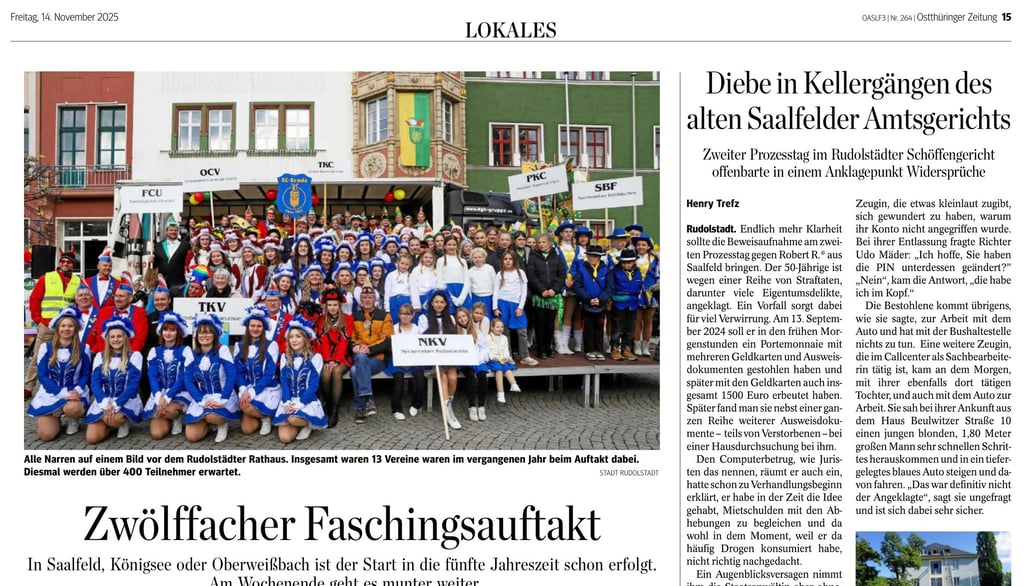 Zwölffacher Faschingsauftakt in Saalfeld-Rudolstadt: Wann es wo losgeht